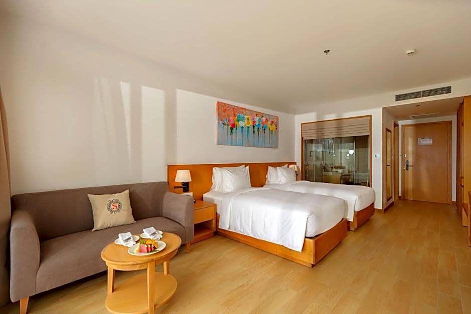 On-site dining covers every mood, with All Day Dinning, Snack Bar, Noa Seafood, and Steak House offering a range of flavors from casual bites to more indulgent meals. After sunset, the seaside ambiance comes alive with live music performances that pair perfectly with the ocean breeze. A private beach area with free water sports on site keeps the energy up, while spa and wellness packages invite true relaxation.